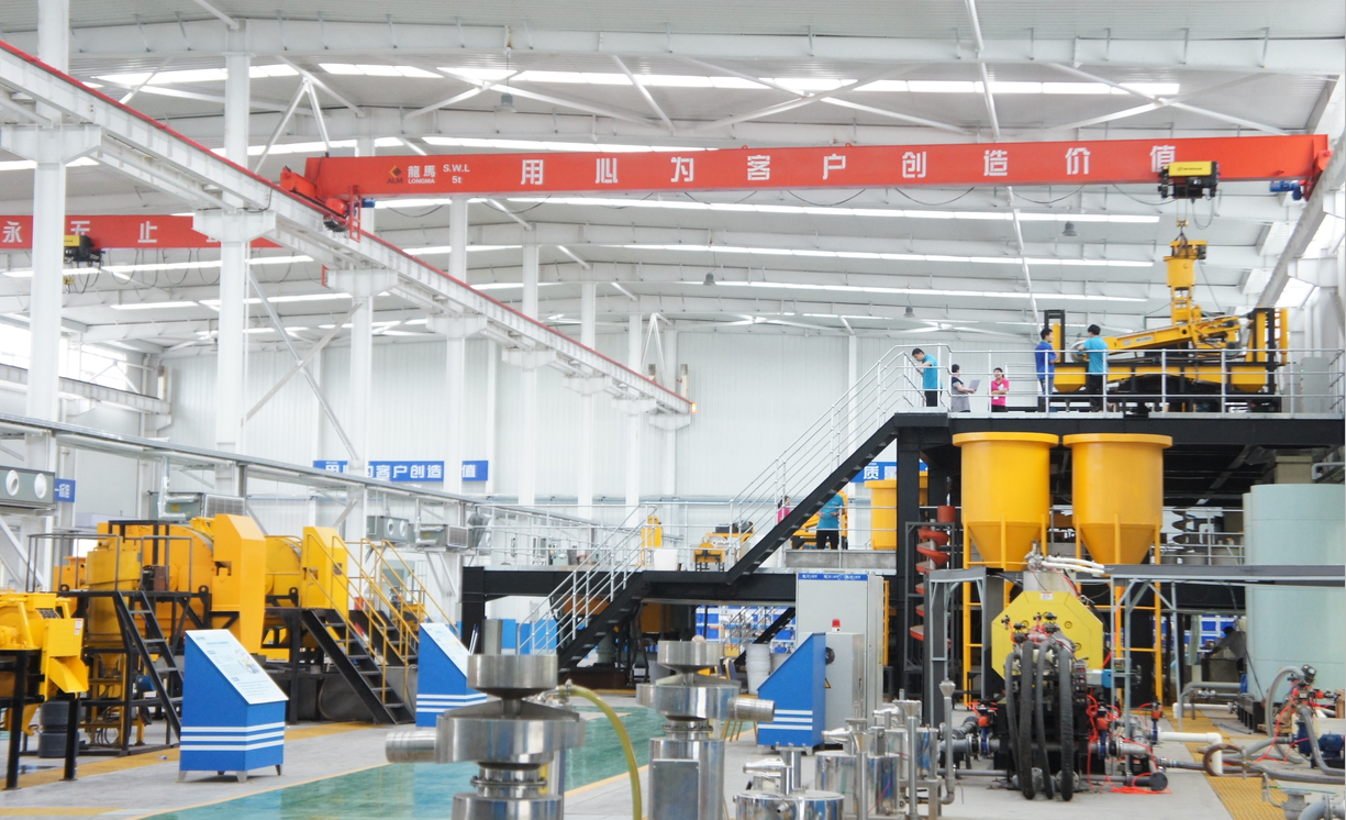 在大型的鋼結構平臺上設有多功能實驗生產線系統,在這里可以模擬濕法選礦廠工業生產線的運行狀態,可對各種礦物進行磨礦—分級—選礦—脫水等全流程半工業化選礦實驗,通過對不同試驗機的搭配組合,可滿足各種礦物所需要的選別工藝流程。通過這個全流程系統化的實驗,更加確保實驗數據的可靠性和穩定性。